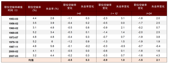 图表:失业率和职位空缺率在职位空缺率达到峰值后的变化