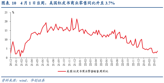 美国零售销售反弹。4月1日当周,美国红皮书商业零售销售同比3.7%,3月25日当周为2.8%。