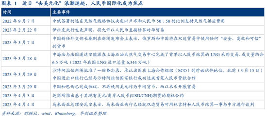 近日,全球“去美元化”浪潮再起,人民币国际化一度成为市场关注焦点。从去年中俄输气协议中决定用本币(卢布:人民币=50:50)进行结算,到日前中法完成首单LNG跨境人民币结算交易、巴西宣布与中国的货币结算安排,人民币的国际计价支付功能越发凸显,引发人们对人民币国际化的关注。