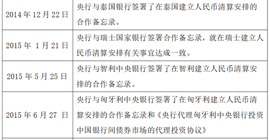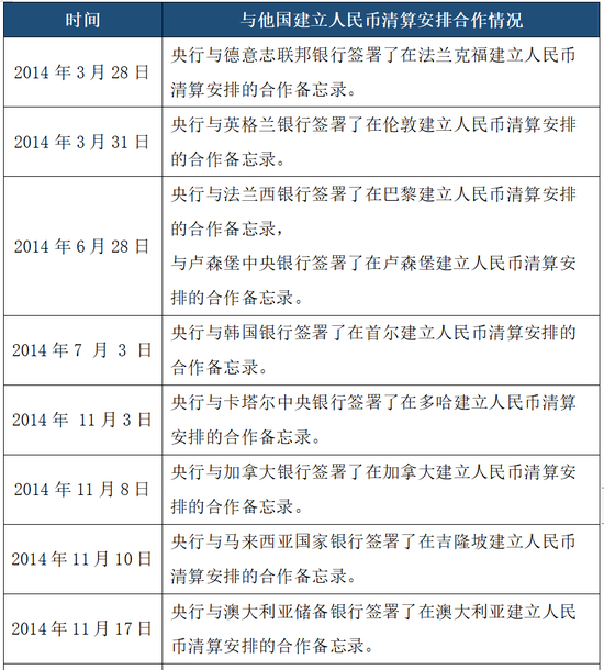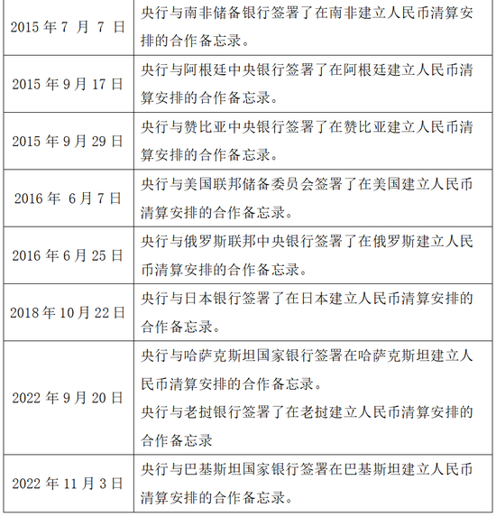 中国与巴西跨境支付合作的良好进展正是近年来人民币国际化的重要彰显。截至目前,人民银行已经在29个国家和地区授权了31家人民币清算行,大大提升了人民币跨境清算效率、便利了跨境人民币使用,为市场主体提供了更加多元化的币种选择。下表为历年央行与他国签署人民币清算安排合作备忘录的情况(未穷尽式列出):