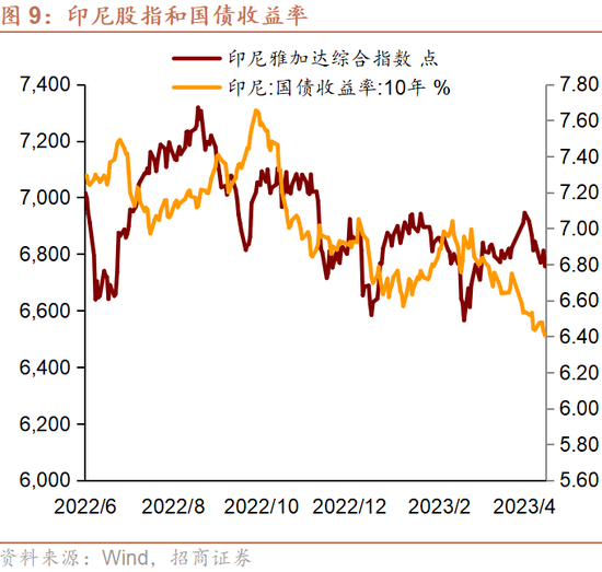 金融市场方面,美国就业与经济尚有韧性,流动性危机短期降温,海外流动性未进一步宽松,美元有所走强。近期东盟股市稳中偏弱,汇率普遍贬值,利率均有不同程度下行。货币政策方面,虽然经济形势存在差异,但通胀总体下行促使东盟国家货币政策边际倾向于更加宽松:泰国、马来西亚央行延续加息周期,菲律宾、印尼或将停止加息。