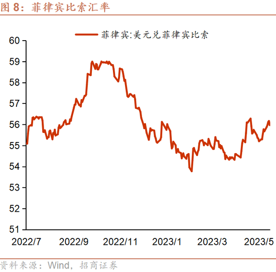 汇率:5月19日,菲律宾比索汇价为56.0/美元,与4月19日大体持平。
