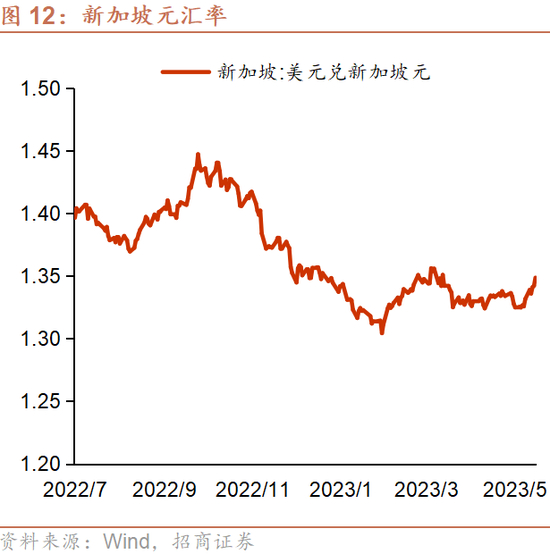 汇率:5月19日,新加坡元汇价为1.35/美元,较4月19日贬值1.1%。