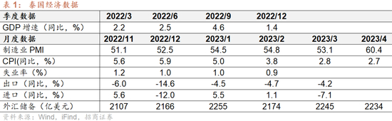 GDP:5月11日,泰国总理府办公室发言人阿努查表示,据泰国央行数据得知,泰国经济复苏持续向好,出口将会在下半年得到改善。预计年底全球及贸易伙伴经济好转,并助推泰国出口及GDP增长好于上半年。预计今年上半年泰国GDP增长2.9%-3%,下半年增长将会超4%,从而使2023全年GDP增长3.6%。