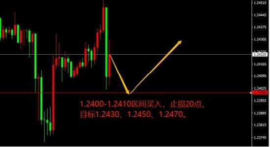 1.2400-1.2410区间买入,止损20点,目标1.2430、1.2450、1.2470。