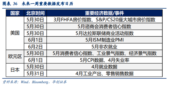 欧洲中心-外围国家利差收窄。5月25月,德国与葡萄牙、意大利10年期国债利差分别为-77bp、-187bp,一周前分别为-87bp、-192bp。