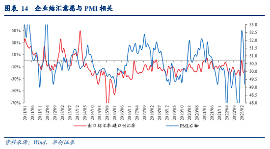 2)跟踪指标PMI。企业结汇与否其实主要看是否有订单,与国内PMI相关。