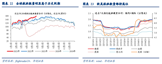 欧美航班数量维持高位。截至5月26日的一周内,美国执行航班数量累计为6.2万架次,5月19日当周也为6.2万架次。截至5月26日的一周内,欧洲主要国家执行航班数量合计为8.06万架次,5月19日当周也为8.06万架次左右。