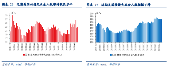 近期美国初请失业金人数维持较低水平。5月19日当周,美国初请失业金人数22.9万人,5月13日当周为22.5万人,5月6日当周为26.4万人。