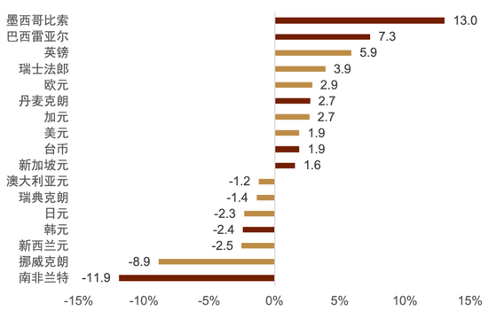 图表12:年初以来主要货币相较人民币的变化率