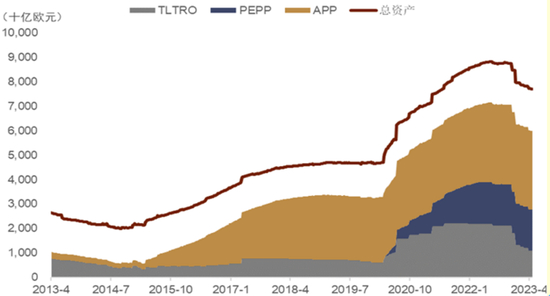 不过在随后9月的议息会议上,随着本轮加息对欧元区经济的负面影响更明显的体现出来,我们认为ECB大概率会宣布停止本轮加息。从欧元区一季度的“银行贷款调查”中可以看出,本轮ECB的加息已经使得金融环境快速收紧并且对实体经济产生了重大影响。银行贷款调查显示,第一季度欧元区的信贷标准已经“进一步大幅收紧”;“欧元区银行向企业和家庭提供的贷款收紧程度大于前一个季度的预期,这也显示了贷款动能的持续减弱。”(图表26)另外,今年一季度欧元区企业对贷款的净需求下降的幅度也超出了市场的预期(图表27),其降幅为08年全球金融危机以来最大。在此背景下,欧央行9月召开会议时可能会对其紧缩的货币政策对经济造成的下行压力进行全面的评估,而随着夏季过后潜在通胀进一步见顶(上周公布的数据显示德国,法国和西班牙的通胀降幅已经超出市场预期:其中德国5月CPI初值同比上涨6.3%,这是自2022年3月以来的最低水平,西班牙的欧盟调和CPI同比仅上升2.9%,为近两年来的最低水平,而欧元区5月整体通胀初值显示通胀延续了去年年末以来的下行趋势,而ECB关注的核心通胀也超预期走低并且自今年4月以来初现下行趋势,图表28),我们认为ECB应该对核心通胀在未来几个月的下降抱有更大信心。加之今年3季度开始ECB会加快量化紧缩的步伐(从2季度的150亿欧元/月加速至300亿欧元/月,图表29),欧央行应该有充足的理由暂停本轮加息周期。近期包括法国央行行长Villerory在内的ECB票委也表达了类似观点[11],他再次重申了对进一步收紧货币政策的谨慎立场,“欧央行应该密切关注此前的加息行动给经济带来的影响,并且不晚于9月份结束加息。”如果这样的预期得以兑现,我们认为支撑欧元的利差收窄逻辑可能会在今年四季度有所消退。当然,如果美联储在今年4季度鉴于经济下行压力开始降息,那么即使ECB届时停止了加息周期,欧美相对利差的继续收敛依旧会给欧元带来支撑。尤其考虑到ECB今年3季度开始大概率会加快缩表速度至300亿欧元/月(图表29),而美联储可能继续会对美国银行业通过“discounted window”,“BTFP”等借贷便利提供流动性进而部分抵消其缩表带来的紧缩效果。