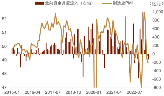 图表19:制造业PMI与北向资金月度流向
