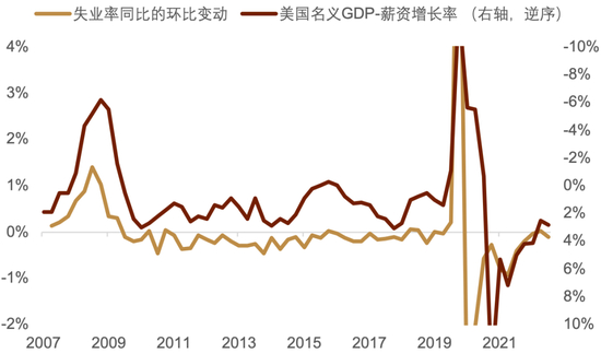 美元指数在2022年经历了显著上涨,其主要原因或是美联储此前超常规的货币宽松政策推动了美国通胀的火热,进而迫使美联储在2022年大幅加息抑制通胀。然而随着联邦基金目标利率的一再抬升,高利率环境下经济与金融市场所承担的压力也逐渐显现,3月初的硅谷银行倒闭事件令美联储不得不将金融稳定因素纳入考虑范畴,而美国银行体系面临的压力也对信用扩张起到了降温作用。作为美国GDP的领先指标,世界大企业联合会美国领先指数(LEI)同比变动自2022年7月起转为负数,今年4月录得读数107.5,创2021年以来最低,LEI的大幅回落或意味着美国经济面临的压力正在增加,GDP同比下降的概率也较大(图表4)。这意味着美联储的超常规紧缩政策对于经济的限制作用将在下半年继续显现,美国经济下半年的表现或弱于上半年。