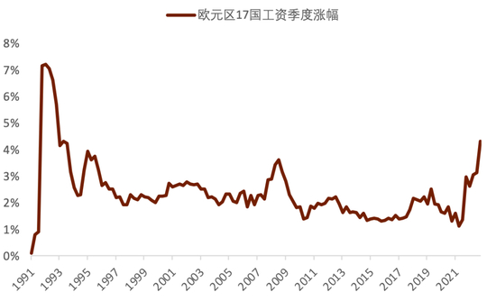 图表8:欧元区一季度工资涨幅创出30年以来最高