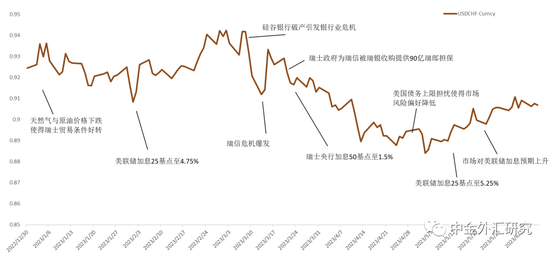 ► 2023上半年整体看市场对SNB较为稳定的加息预期、美国银行业危机带来的避险资金支持和瑞士经济(贸易条件的改善)的偏强表现令瑞郎的表现在G10货币中排名仅次于英镑,截止6月9日收盘上涨3.6%附近