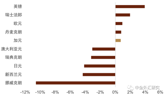 2023年上半年整体看,市场对SNB较为稳定的加息预期、美国银行业危机带来的避险资金支持和瑞士经济(贸易条件的改善)的偏强表现令瑞郎的表现在G10货币中排名仅次于英镑,截止6月9日收盘上涨3.6%。展望2023年下半年,我们认为瑞郎对美元大致会保持强势,总体而言,瑞郎的表现可能在G10货币中偏靠前,主因是市场对SNB的加息预期远超过市场对美联储的加息预期,而这可能从利差的角度支持瑞郎走强。另外,如果美国经济在4季度陷入衰退,瑞郎的避险属性可能再次对其产生支撑。但值得注意的是,SNB对瑞郎过强可能进行的干预或许会限制瑞郎走强的幅度(今年3月的议息会议上,SNB再次强调随时准备干预汇市)。
