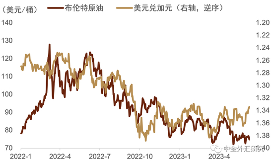 在我们的基准情形下,下半年经济的韧性与通胀的压力将推动加拿大央行进一步加息,并与已经接近加息周期顶点的美联储形成对比,美国加拿大国债利差在下半年可能趋于收窄,进而利于资金流入加拿大并支撑加元汇率。此外,受原油需求稳定而供给收缩的影响,油价中枢在下半年可能上抬,而美国加息滞后影响的逐步显现以及经济压力或令美股面临一定回调压力。在上述宏观假设下,我们判断加元在下半年或趋于震荡走强,年末美元加元汇率或为1.30。由于上述宏观假设可能会出现变化,我们的汇率预测亦存在上行风险或下行风险。