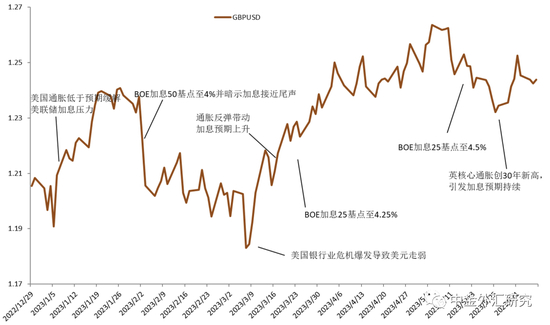 我们对英镑的判断是基于英国的核心通胀会在短期内保持在高位,而BOE会如期兑现市场目前对其的加息周期,进而使得英美短端利差进一步收窄而支撑英镑。但若英国的通胀压力显现出更大的粘性,那么英国央行大概率会延长其加息周期。另一方面,如果美国经济衰退来的更早,那么市场对美联储降息的预期可能会提前,这样英镑走高的幅度可能会更大。这种情况下英镑下半年可能出现更大幅度的上涨。英镑的交易中枢可能走向1.30一带。