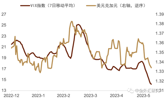 ► 加元的上行风险:如果加拿大的通胀持续超出预期,加拿大央行可能需要持续推动紧缩,本轮加息周期高点或面临进一步抬升,美加利差也将进一步收窄,此外,如果下半年中国与欧洲等国家或地区经济增长超预期恢复,则原油需求将明显增长,改善风险情绪的同时支撑油价。最后,如果美国下半年实现通胀走低而经济状况良好的情形,则市场风险情绪将受到鼓舞,VIX指数的进一步走低将支撑加元汇率。
