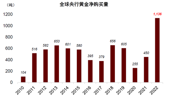图表:全球央行黄金购买量2022年激增