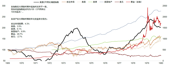 图表:历史上的高利率时代:黄金与实物资产占优