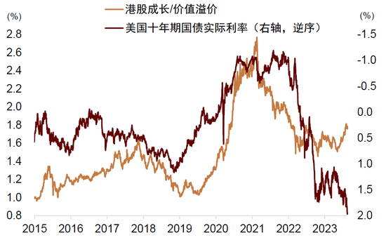 图表:港股成长/价值溢价与美债实际利率负相关