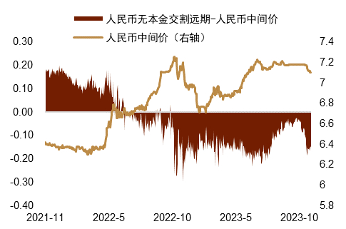 ► 口头调控继续引导人民币汇率预期。潘功胜行长在2023金融街论坛年会称[12]“坚决对市场顺周期行为进行纠偏,坚决对扰乱市场秩序行为进行处置,坚决防范汇率超调风险,防止形成单边一致性预期并自我强化。”第三季度货币政策执行报告亦对汇率着墨较多[13],强调“坚决对市场顺周期行为进行纠偏,坚决对扰乱市场秩序行为进行处置,坚决防范汇率超调风险,防止形成单边一致性预期并自我强化,保持人民币汇率在合理均衡水平上的基本稳定。”在人民币内外部环境完全改善的背景下,口头调控或将继续对市场预期起到引导作用。