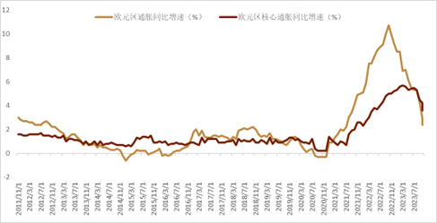 我们认为,欧元区经济活动的疲软态势并未得到明显改善,而今年下半年通胀的显著回落以及ECB在10月会议上的暗示(10月会议货币声明中的措辞暗示本轮加息已经接结束),也可能不会使得ECB再次加息。目前OIS市场也并没有对12月会议有任何的加息预期,而对明年上半年已经有了一次的降息预期。
