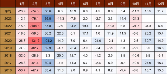 图表8:出口环比变动的季节性变化