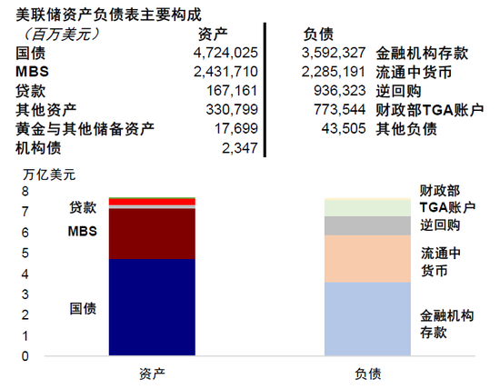 图表3:美联储资产负债相等,准备金的规模走势近似资产负债表规模-隔夜逆回购-TGA账户