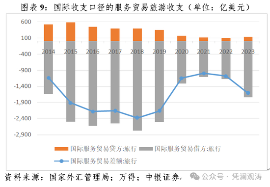 服务贸易对外付款中是否隐藏着个人大规模对外资本转移也存疑。在人民币汇率持续承压的背景下,关于境内居民个人将资金转移境外的各种说法也不绝于耳,真实性审核难度较大的服务贸易特别是旅游项下是重大疑点。实际情况是,2023年,银行代客服务贸易售汇增长26.6%,较2020~2022年复合平均增速高出36.4个百分点,较2015~2019年均速高出26.2个百分点,恢复到了2015~2019年均值的79.5%。这既可能是防疫转段后,前期被压抑的出境游需求集中释放,也可能是居民以出境游名义在年度售汇总额内购汇,用于资产分散化配置。前者是正常的经常项目用汇,后者若不汇出境外而存放银行,则反映为银行部门对外资本输出,不能算作资本外逃。据人民银行统计,截至2023年底,住户境内外汇存款余额1252亿美元,与上年底基本持平;年均外汇存款余额1247亿美元,较上年减少13亿美元。由此可见,居民购汇存放境内的情况并不突出。至于居民是否以出境旅游名义购汇后汇出境外,行个人资本转移之实,则要看国际收支口径的旅游贸易数据。