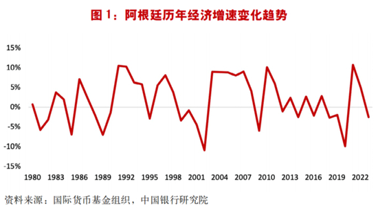 自上世纪80年代起,阿根廷先后遭受拉美债务危机、次贷危机以及新冠疫情的冲击,经济增长潜力明显弱化。目前,阿根廷经济呈现高通胀、高外债、本币持续贬值、资本外流等特点。米莱的当选反映了阿根廷民众对社会现状强烈不满,希望通过新的领导人推动社会变革,改变当前国内面临的经济金融困局。