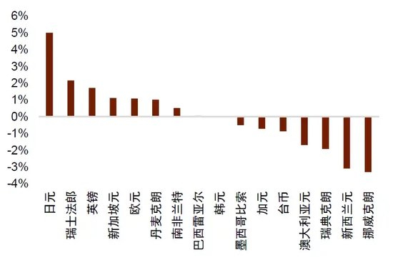 图表10:近一个月来,日元和瑞士法郎涨幅居前