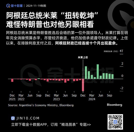 米莱上任以来,在排除利息支付之后,阿根廷财政已经连续十个月出现盈余。