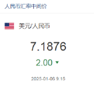 1月6日,人民币兑美元中间价报7.1876,上调2点。