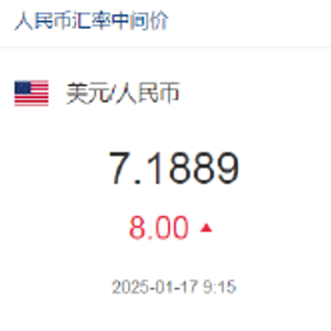 1月17日,人民币兑美元中间价报7.1889,下调8点。