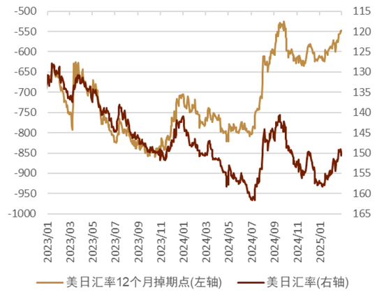 图表5:美日汇率12个月掉期点与美日汇率的走势