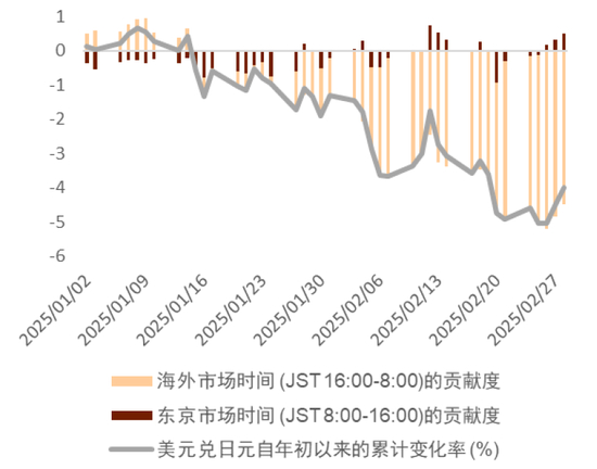 图表2:2025年以来不同交易时间的美日汇率变化贡献度的走势