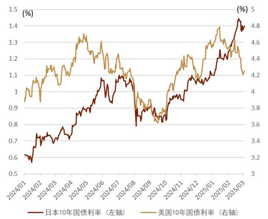 25年1月日本的综合CPI同比高达4.0%,为主要发达经济体中最高的水平,目前的日本通胀由“成本推升”与“需求拉动”共同推动,反映出日本国内高涨的通胀压力。在此背景之下,我们认为日本央行或进一步加息,终点利率或在1.5%附近。