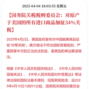 昨天,特朗普竟对中国征收34%对等关税。