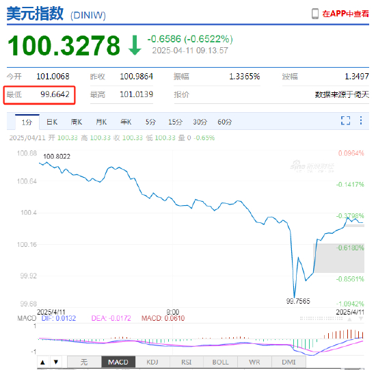 4月11日,美元指数一度跌破100关口,为2023年7月以来首次!人民币兑美元中间价七个交易日来首次调强,上调5个点报7.2087元。离岸人民币一度升破7.3。