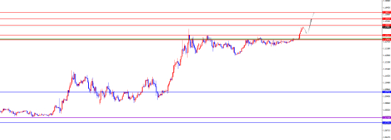 从多周期分析,从月线级别来看,欧美受撑于1.0770位置,所以长线多头对待。从周线级别看价格受撑于1.0790 区域的支撑,从中线的角度持续看多。从日线级别,价格受撑于 1.1180 区域支撑,所以波段同样多头的思路对待。从短期四小时级别看,目前1.1380-90位置是关键支撑位置,价格在四小时上短期偏多,所以目前多周期均处于多头表现,操作上继续逢低布局多对待。
