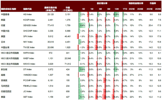 在市场存在不确定性背景下估值以及每股收益增速预计可能会持续调整。截至4月17日,印尼综合指数IDX Composite Indeks Harga Saham Gabungan(IHSG)自年初以来已经下跌7.5%。根据彭博一致预期,印尼股市目前整体估值对应10.7倍2025年远期市盈率和9.6倍2026年远期市盈率,我们认为在政府如何处理贸易摩擦前景尚不明朗的背景下印尼股市整体估值可能会继续调整。