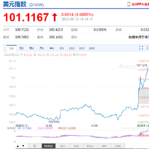 美元指数短线快速拉升 离岸人民币走弱,日内贬值近300点 市场资讯 2025.05.12 15:17 外汇K线图 相关阅读:中美日内瓦经贸会谈联合声明 5月12日,美元指数短线快速拉升,离岸人民币走弱,日内贬值近300点。