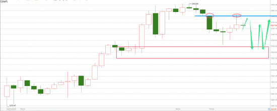 下方比较关键的位置则是在3320-3330这里,一旦跌破3320,也要小心会进一步加速下跌的可能性出现。