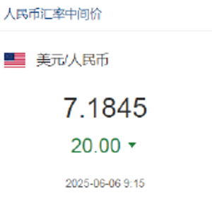 6月6日,人民币兑美元中间价报7.1845,上调20点。