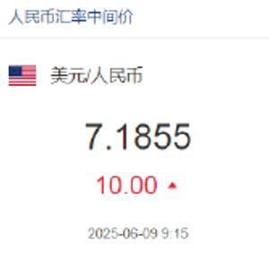 6月9日,人民币兑美元中间价报7.1855,下调10点。