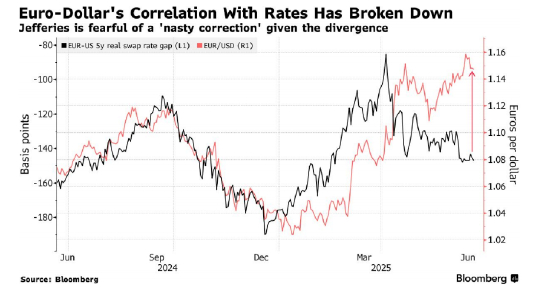 这开始给 Jefferies LLC 外汇销售和交易全球主管Brad Bechtel 敲响警钟。他警告说,美元最终将出现反弹,使其与利率趋势保持一致。“无论驱动因素是什么,它都在将事情推向极端,因为它不会影响央行政策或增长预期,”他说。“出事了。”