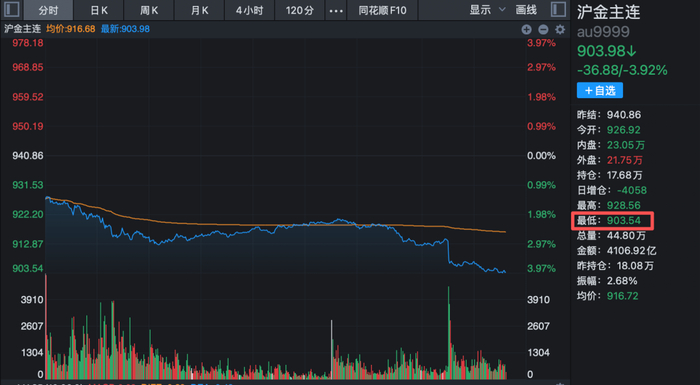 经历连续回调后,国际金价跌破4000美元/盎司大关。国内期货市场上,10月28日,沪金、沪银主力合约继续下跌,沪金直逼900元关口。