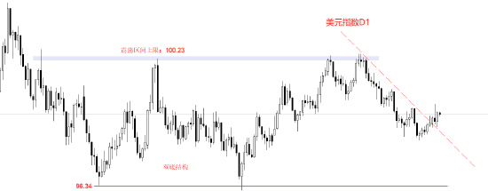 最近四个交易日,美元指数有突破下降趋势线开启反弹的特征,日K线波动率不断放大,多空博弈极为剧烈。周一长上影线阴K收盘,周二多头发力,近乎“光头”的K线形态收盘。如果今日涨势延续,美元指数有可能突破震荡区间上限。